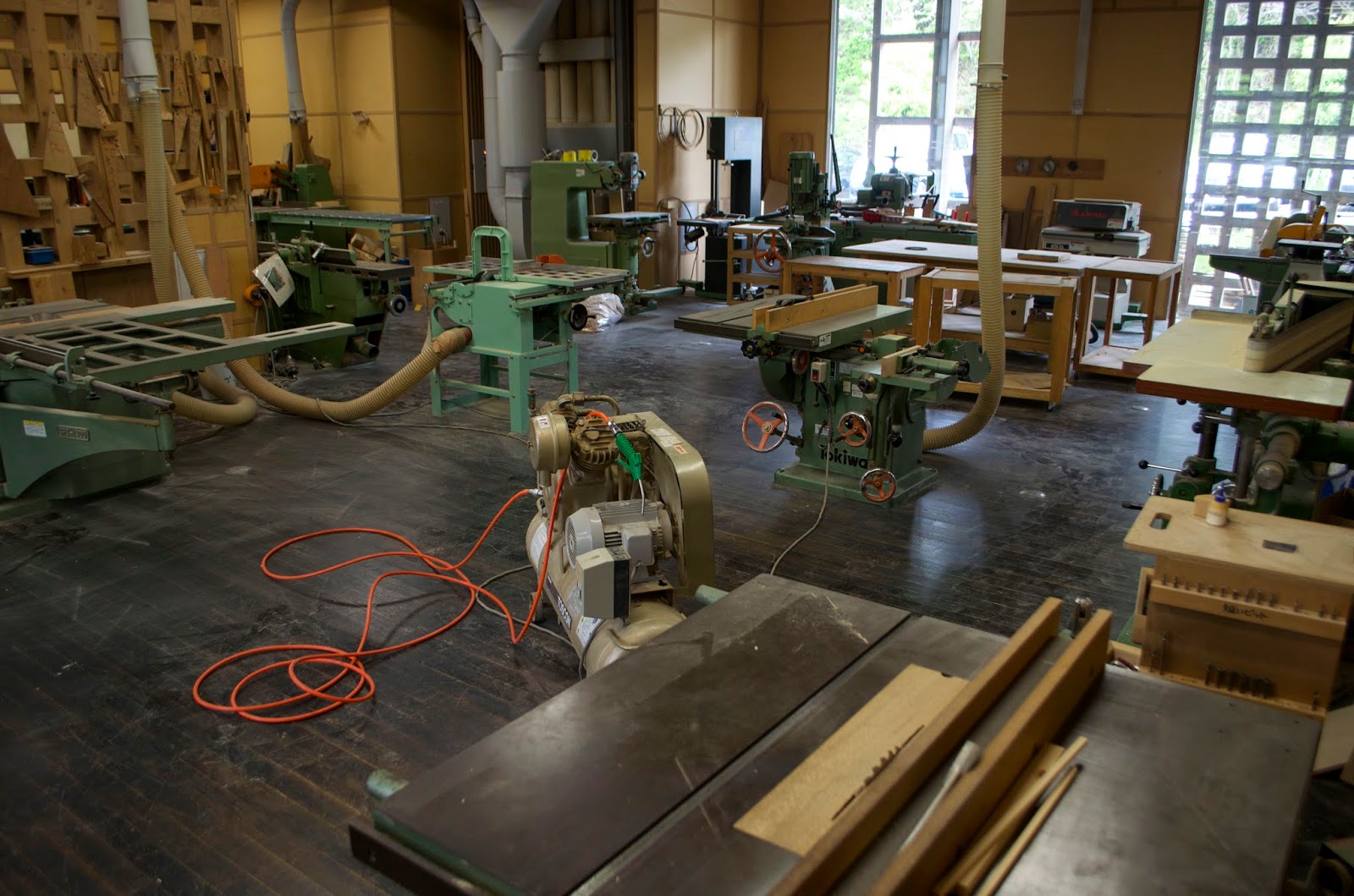 The program is trying to encourage students to develop wooden products based on local traditions and needs. One of last year's graduates is now making geta, or wooden sandals. The shot above was a project were all the students made very small carving chisels and planes and each had to make a bowl with them.