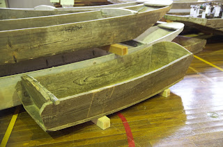 The molds are sitting in the boat. Its quite narrow. The curator was glad to have me give him the English names for the various parts.